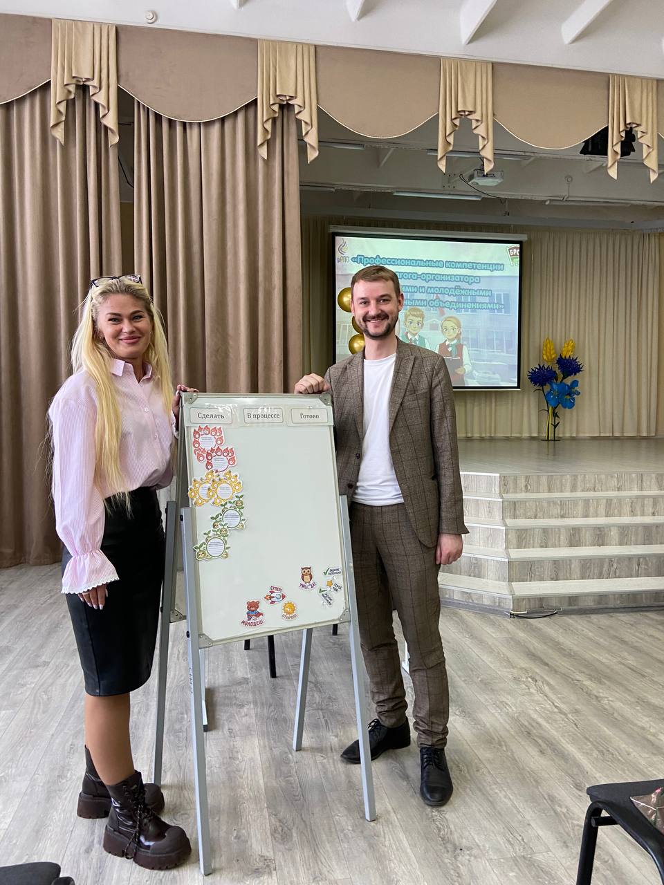 Елена Пилипейко, педагог-организатор Козенской школы, выступила с темой «Спринт-доска как метод визуализации планирования в работе с детскими объединениями», предложив эффективные инструменты для организации работы с молодежью.