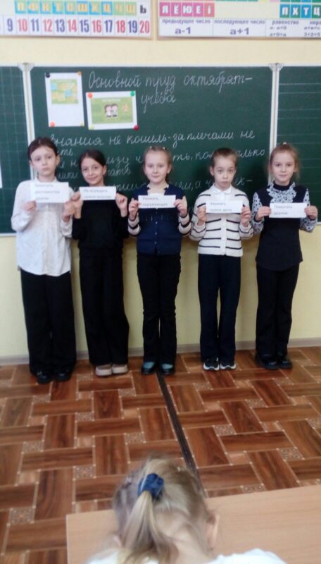 Учащиеся 3-х классов обсудили, что «основной труд октябрят — учёба». На занятиях ребята осознали, как важно учиться и развиваться, чтобы стать настоящими гражданами своей страны.