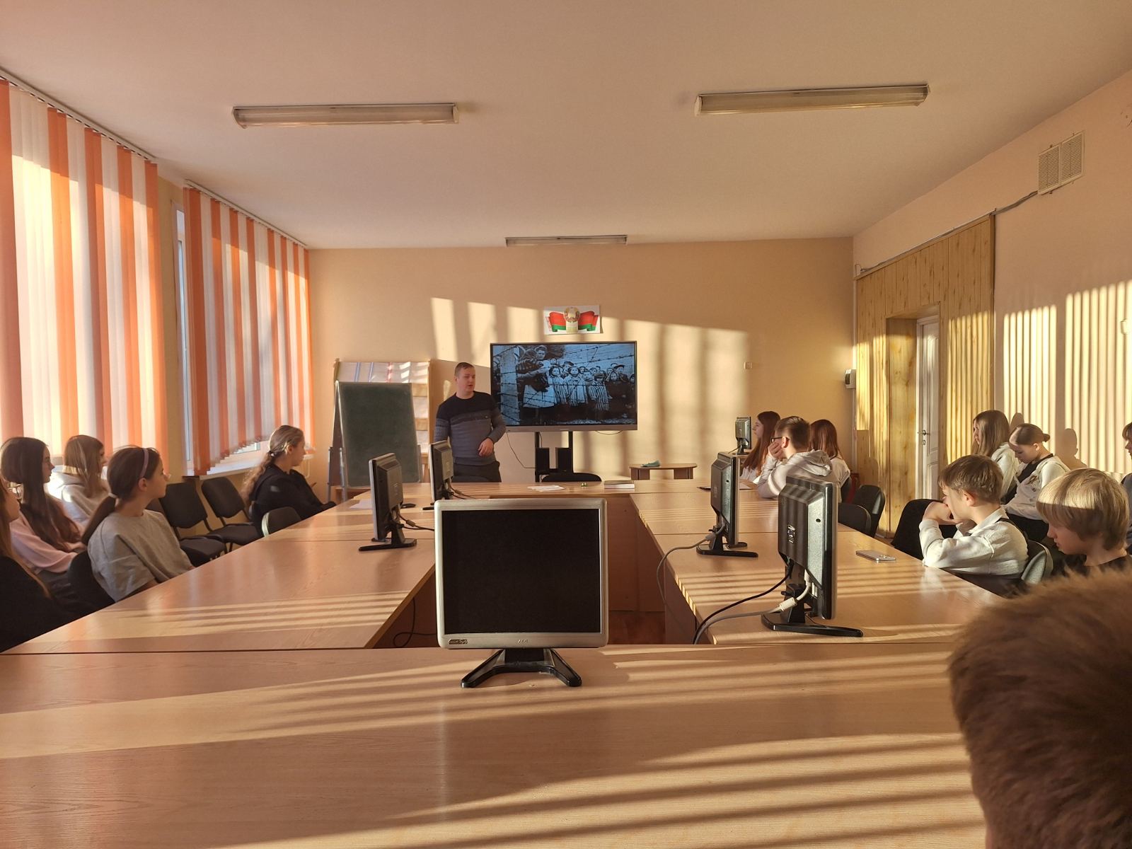 Информационный час сопровождался тематической презентацией с архивными фотографиями и документами, которые помогли создать атмосферу серьезного осмысления.