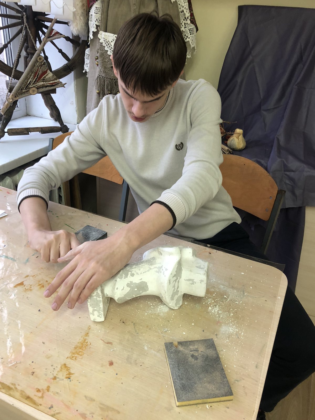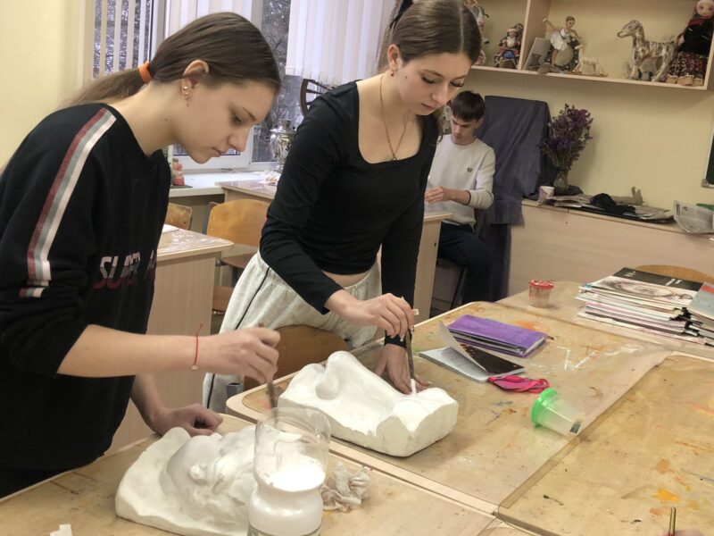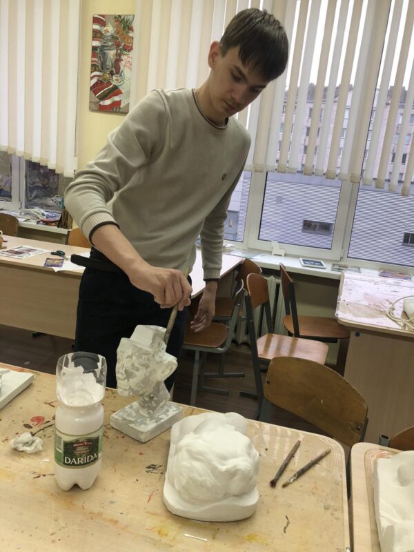 Субботний день наши учащиеся всегда стремятся проводить с пользой. Так, 29 ноября ребята из 8 «А» класса приняли участие в часе полезного труда, в рамках которого они занимались обновлением реквизита в художественной мастерской, зачистили и покрасили гипсовые фигуры.