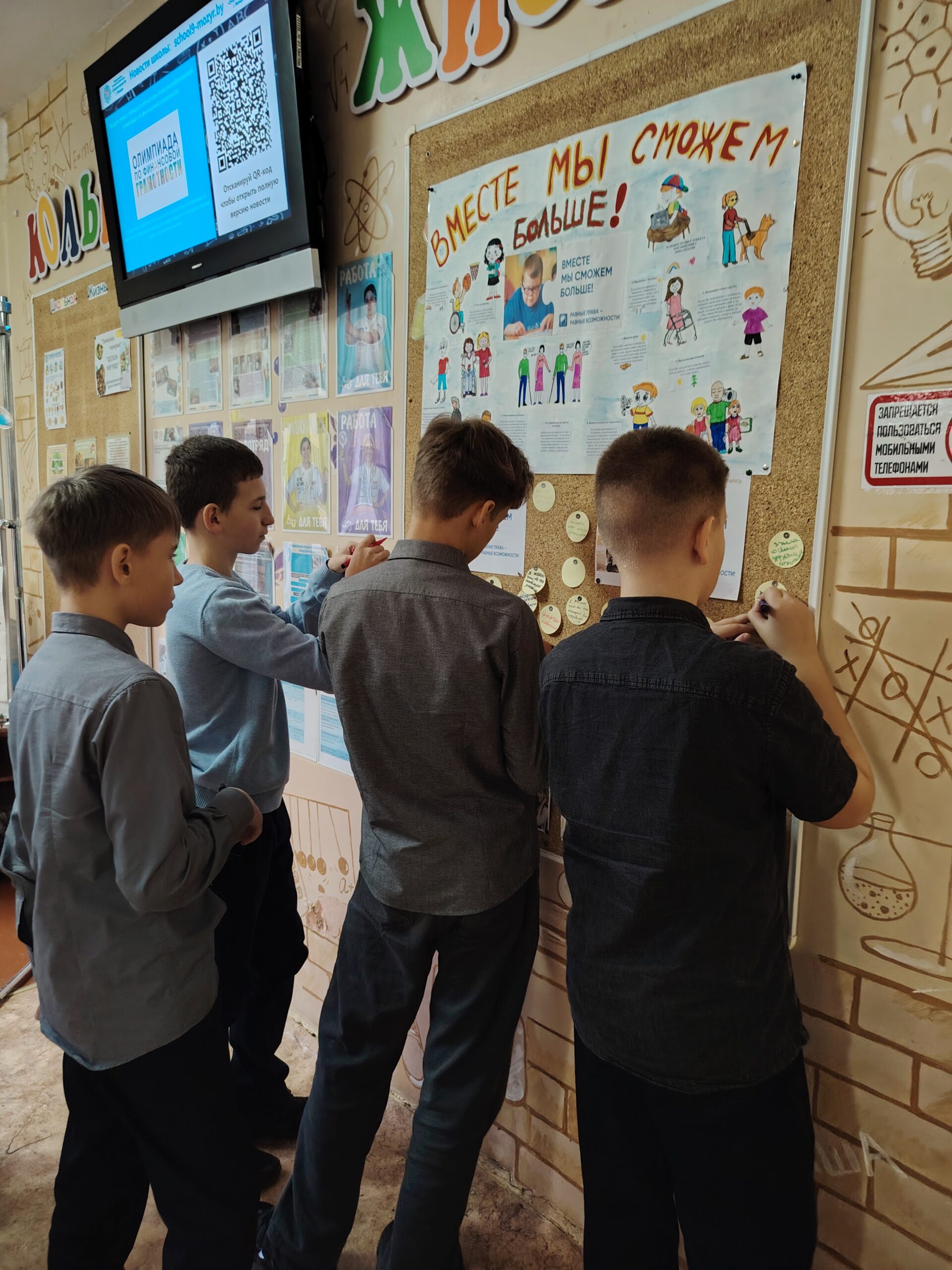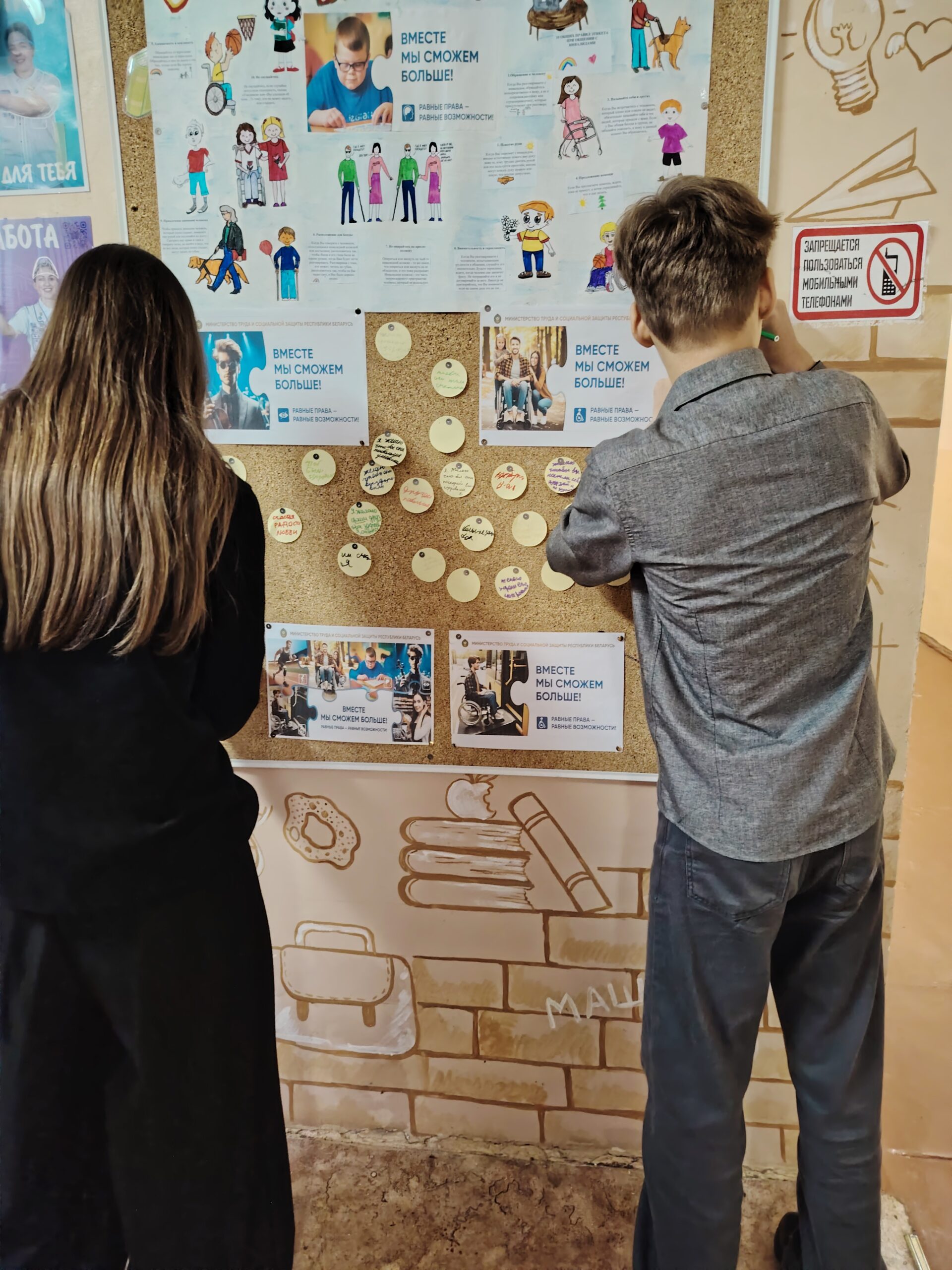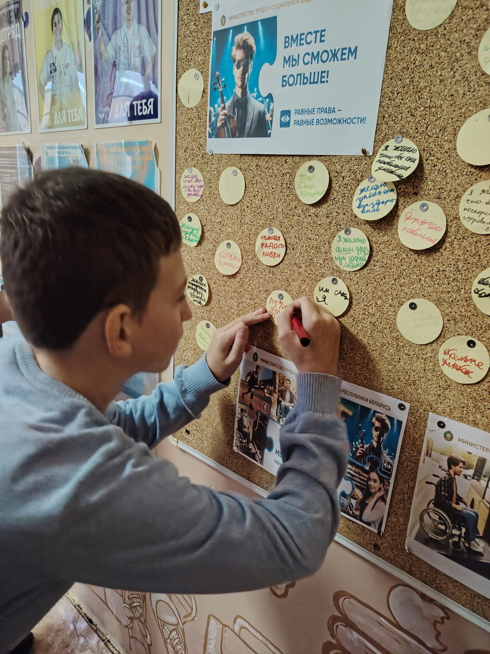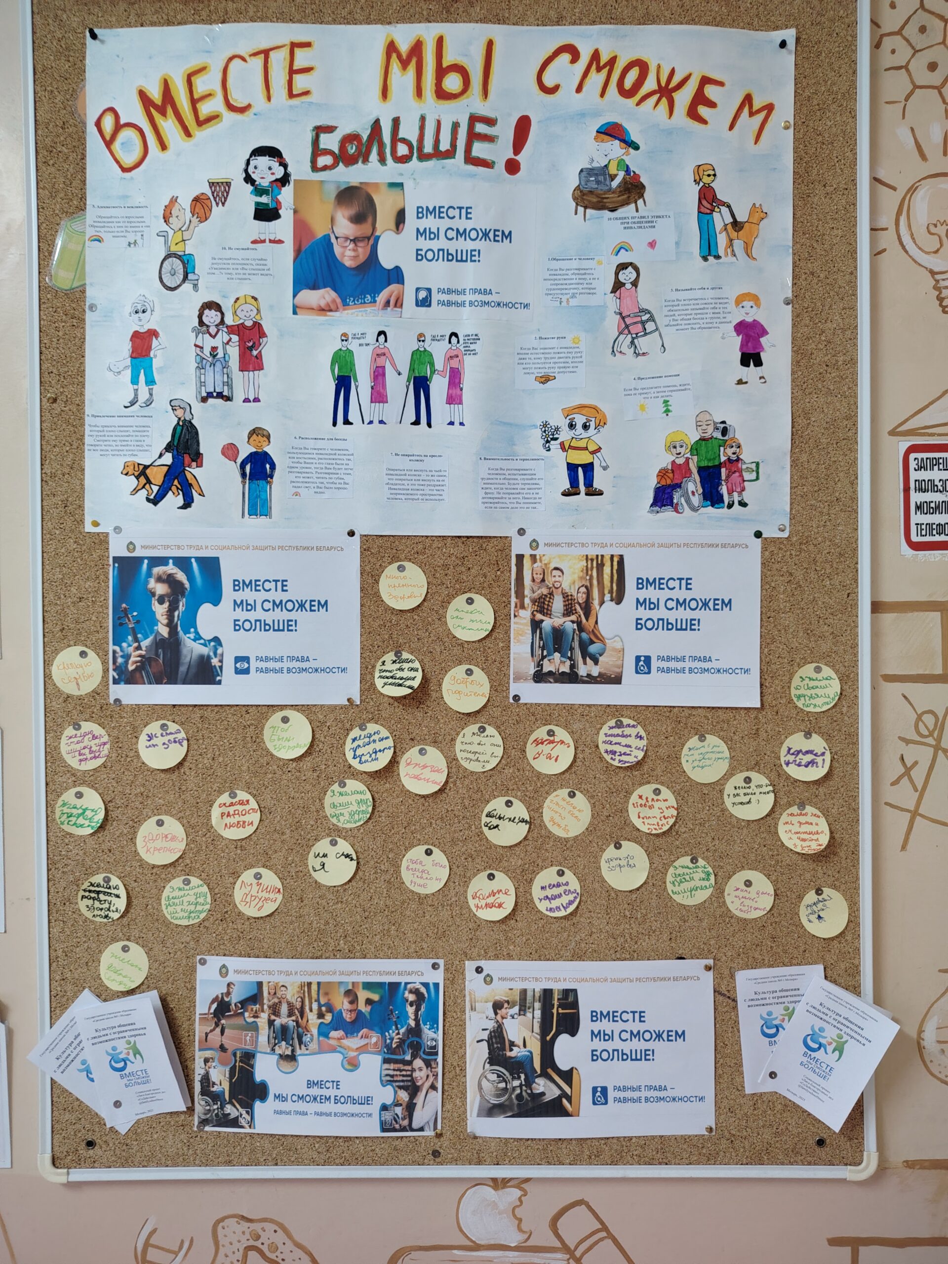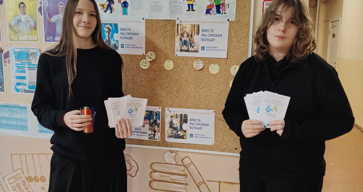 В этот день волонтеры нашей школы провели акцию «Равные возможности». Ребята оформили стендовую зону, а также подготовили буклеты «Культура общения с людьми с ограниченными возможностями здоровья». Участники акции с радостью оставили свои пожелания здоровья, близких друзей, радости, счастья, улыбок людям с ограниченными возможностями здоровья и получили ценные советы по корректному общению с людьми данной категории.