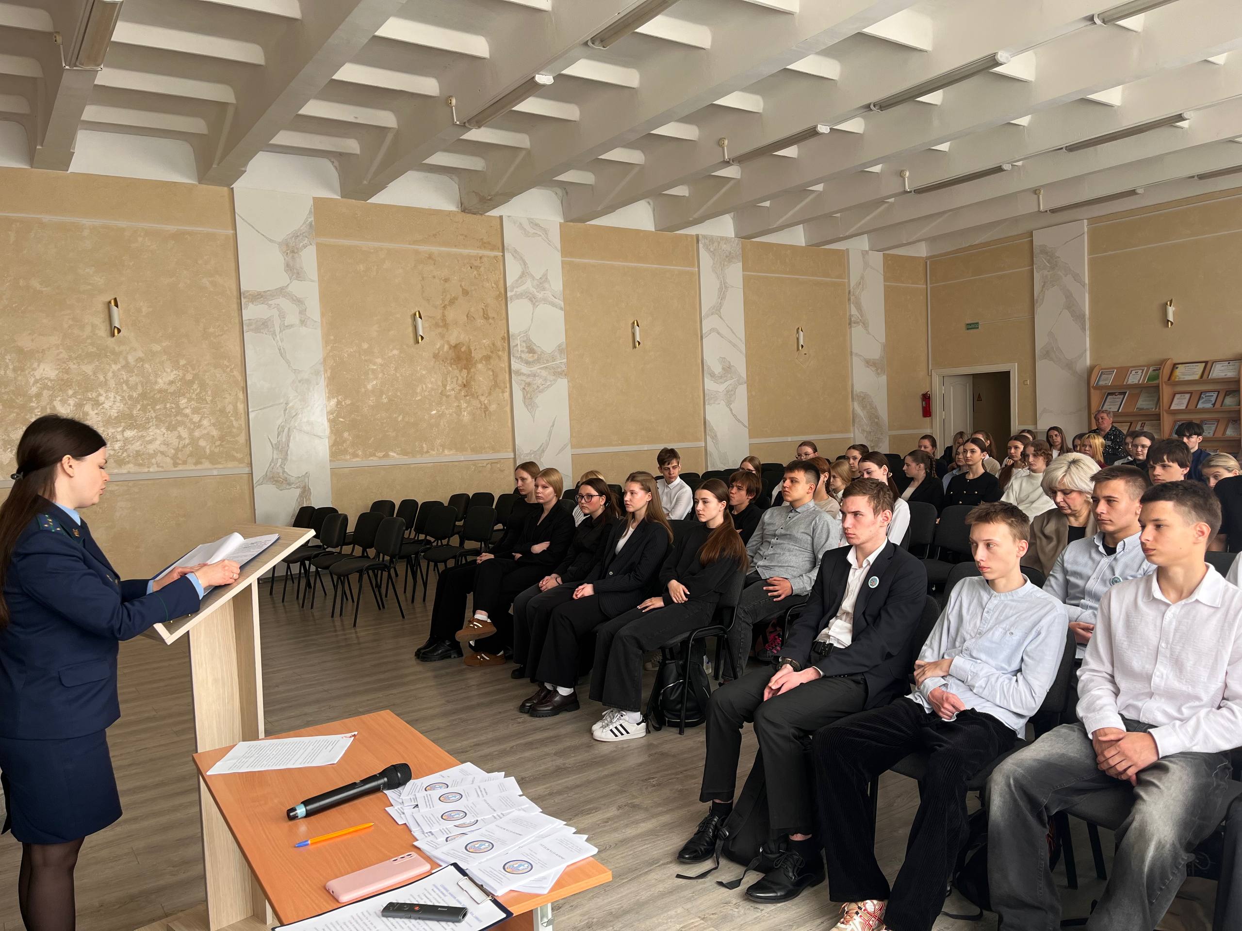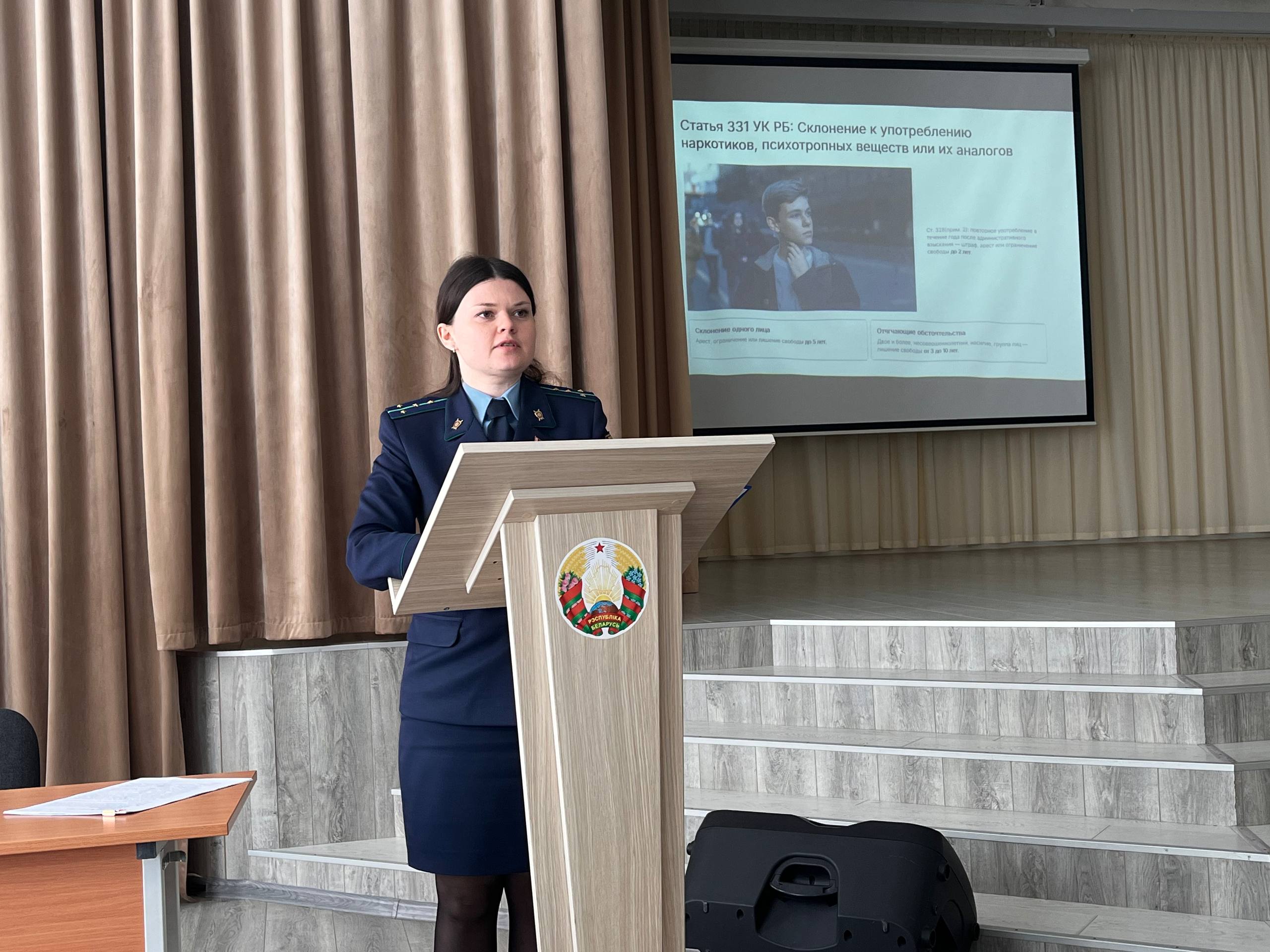 8 апреля для учащихся 10-11-ых классов прошла встреча с помощником прокурора Мозырского района Гушляк Кристиной Юрьевной по теме «Как не попасть в зависимость». В ходе встречи школьники были ознакомлены с правовой ответственностью за нарушение антиалкогольного и антинаркотического законодательства, с последствиями употребления психоактивных веществ для организма и социального статуса человека. Также подростков ознакомили с популярными схемами вовлечения молодежи в противоправную деятельность и способами защиты от преступников.