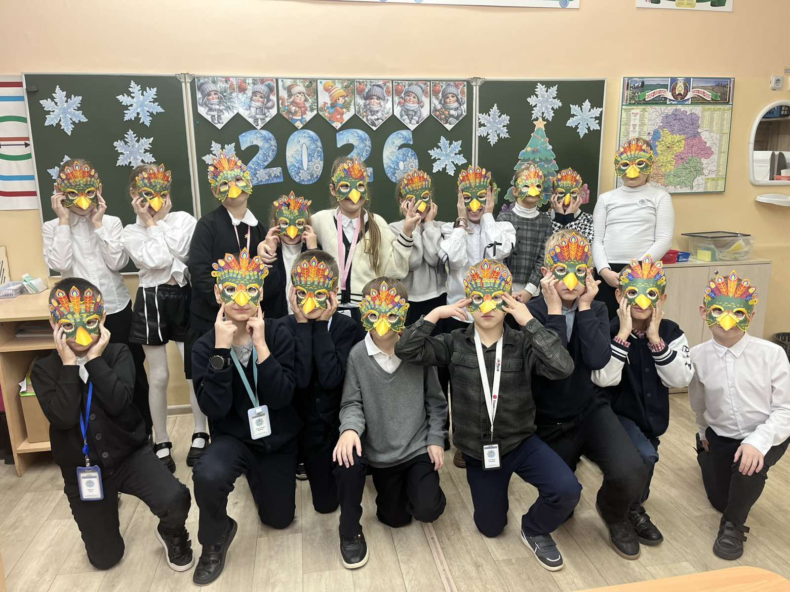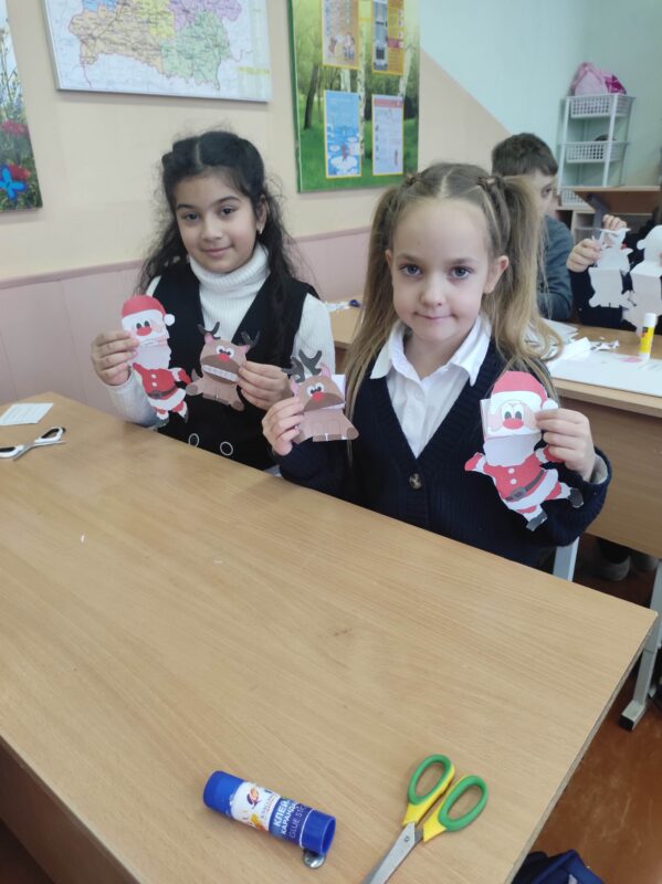 В этот день учащиеся 4 «В» класса отправились в «Новогоднее кругосветное путешествие». В формате увлекательного «воздушного путешествия» учащиеся «посетили» пять стран: Беларусь, Японию, Италию, Швецию, США. В каждой остановке их ждал краткий рассказ о ключевых традициях и активная игровая или творческая деятельность, связанная с местным колоритом: импровизированные колядки, создание свечи пожеланий, украшение праздничного шара.