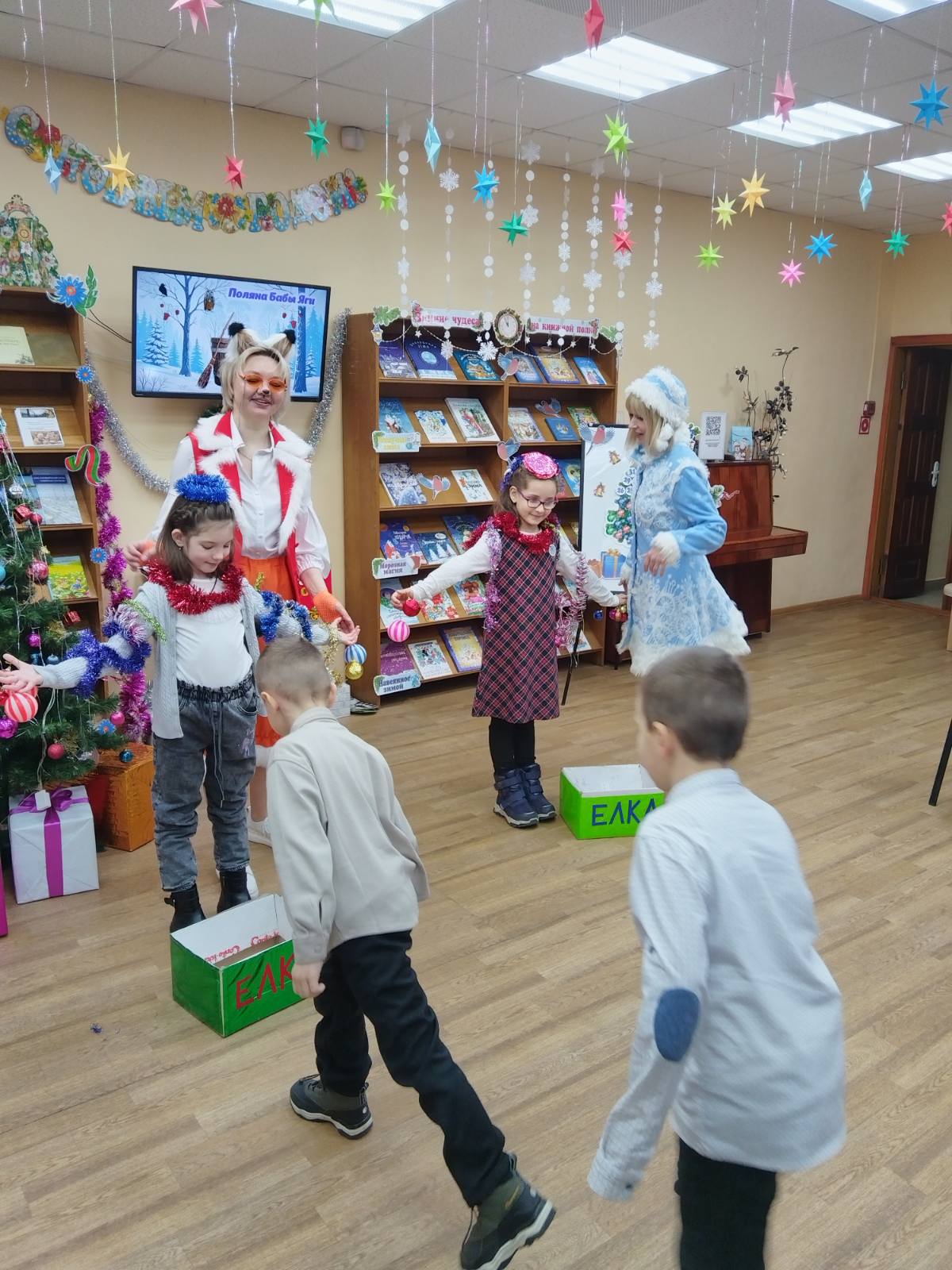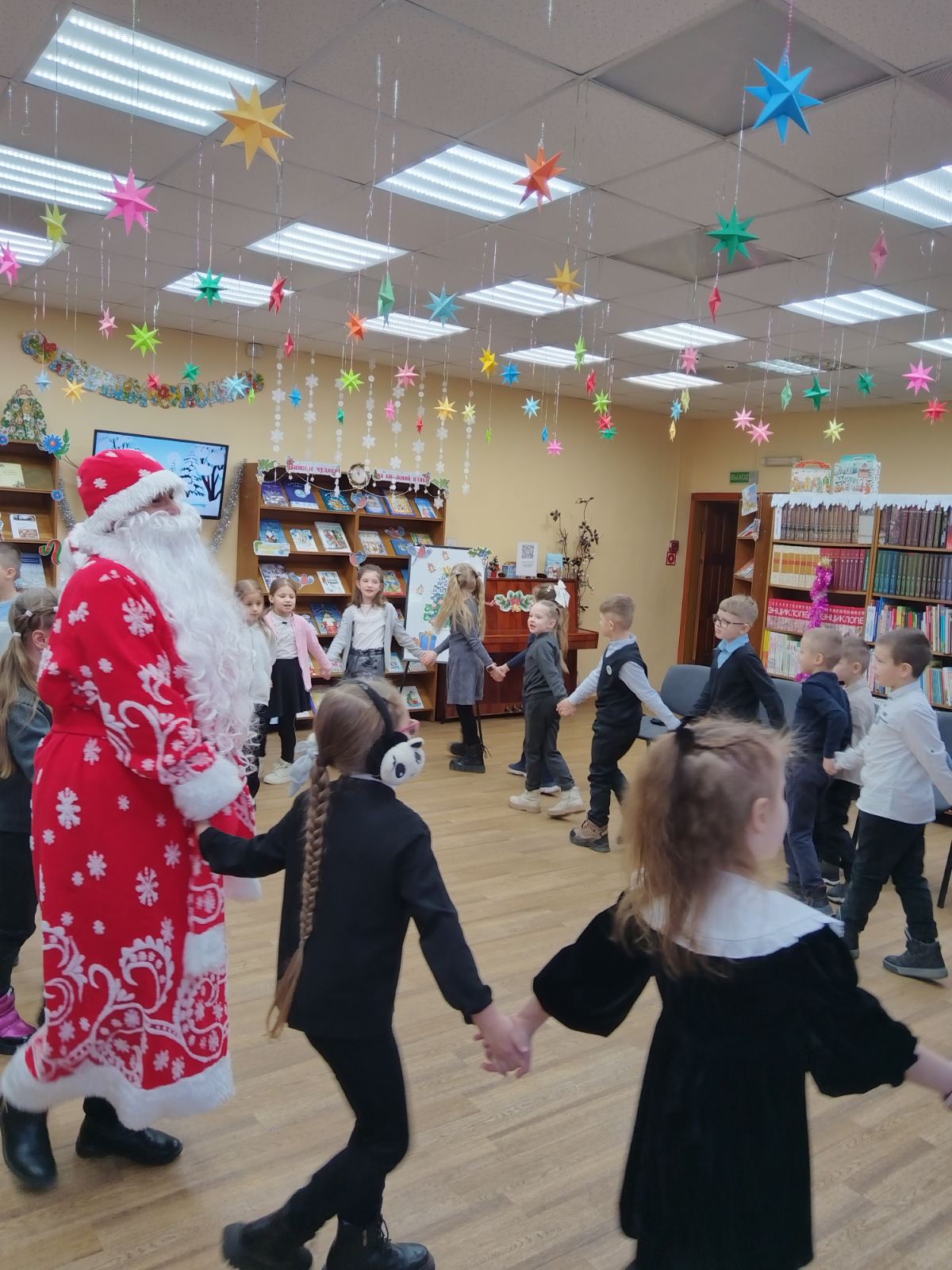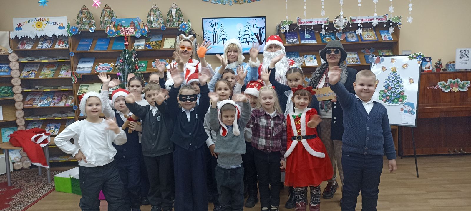 Учащиеся 1 «Г» и 1 «В» классов посетили филиал детской библиотеки №4, где их ждала праздничная программа «Время Новогодних чудес». Вместе с любимыми сказочными персонажами ребята участвовали в интересных играх и конкурсах, читали стихи Дедушке Морозу, водили хоровод, пели новогодние песни.