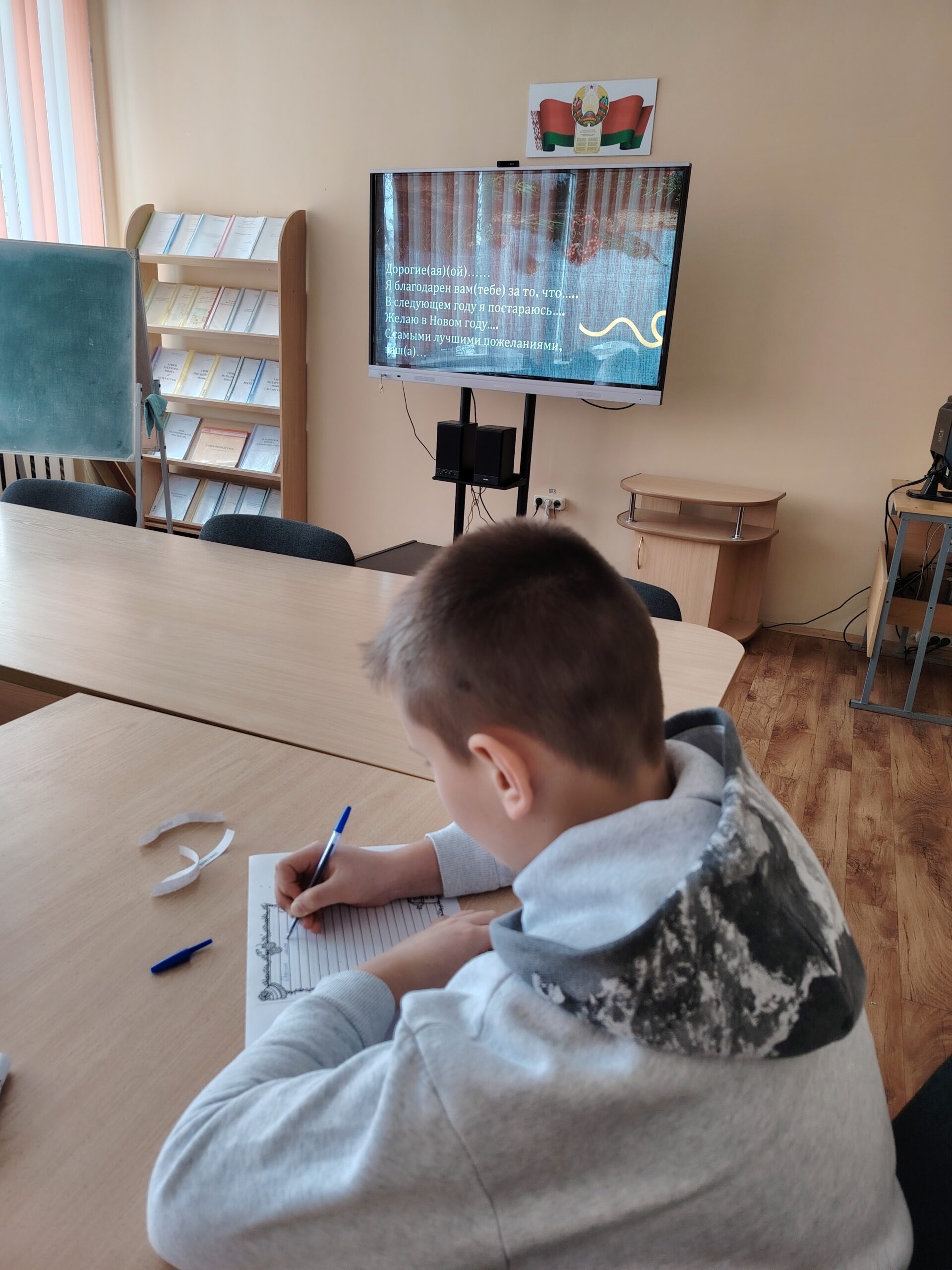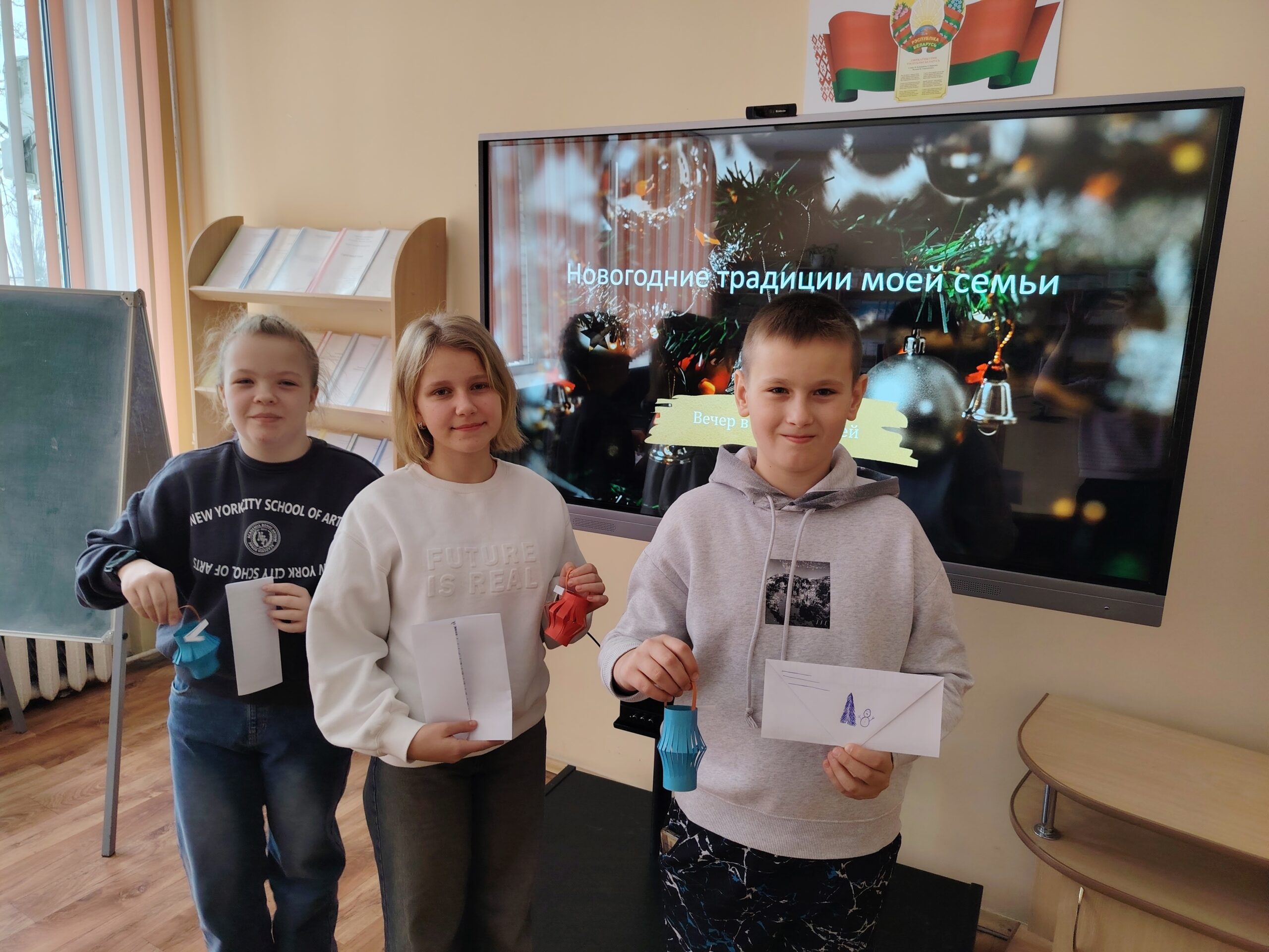 Ребята из 6-ых классов вспоминали новогодние традиции: познакомились с обрядами наших предков, а также разобрались в современных обычаях празднования Нового года. Попробовали себя в роли кулинаров и написали рецепты праздничных блюд, поиграли в «Крокодила», угадывали фильмы по одному кадру. А в завершение написали доброе письмо родителям с теплыми пожеланиями.