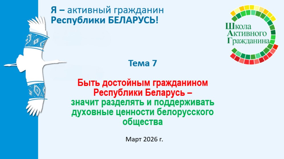ШАГ «Быть достойным гражданином Республики Беларусь – значит разделять и поддерживать духовные ценности белорусского общества»