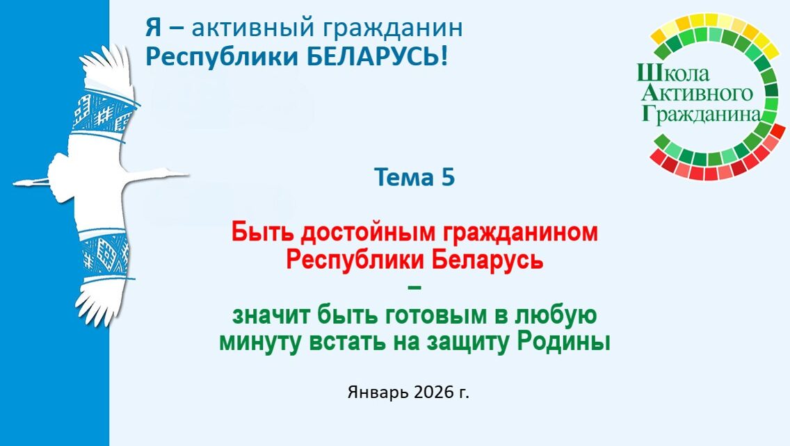 29 января в нашем учреждении образования для учащихся 8-11 классов состоялся единый день информирования в рамках проекта «Школа Активного Гражданина» на тему: «Быть достойным гражданином Республики Беларусь – значит быть готовым в любую минуту встать на защиту Родины». Информационные часы были проведены классными руководителями, а также руководителем по военно-патриотическому воспитанию. В ходе бесед старшеклассники обсудили […]